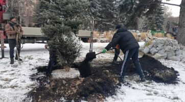 Новые голубые ели, кедры и сосны теперь будут приживаться в сквере на площади Революции. Аварийные деревья сегодня убрали - и высадили 11 новых растений.