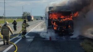 Дорожно-транспортное происшествие на трассе М5 "Урал" в Сосновском районе. Во время движения у поселка Витаминный загорелся мусоровоз "МАЗ". Об этом сообщает Противопожарная служба Челябинской области.