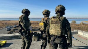 Пока одна группа заходит в подъезд, другая буквально "залетает" в окна. Штурмовые альпинисты, они же – спецназовцы Росгвардии, отработали приемы работы на высоте. Возможно ли не смотреть вниз, когда ты спускаешься по стене многоэтажного дома?