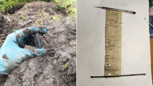 Комиссар челябинского поискового отряда во время студенческой "Вахты памяти" обнаружил медальон солдата Великой Отечественной войны. Экспедиция проходила в Псковской области, на месте бывшего лагеря для военнопленных.