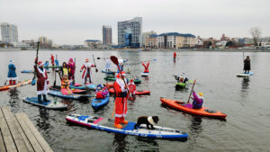 Деды Морозы устроили заплыв на сапбордах в центре Челябинска