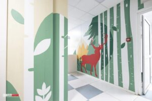 Художники создали необычный интерьер для детского отделения больницы в городе Карталы. Они оформили помещения так, чтобы малыши могли погрузиться в атмосферу сказочного леса.