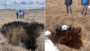 У поселка Красногорский в Еманжелинском районе образовалась яма глубиной несколько метров. Ее осмотрел спелеоархеолог Владимир Юрин, который сделал первое открытие и планирует продолжить работу по изучению объекта.