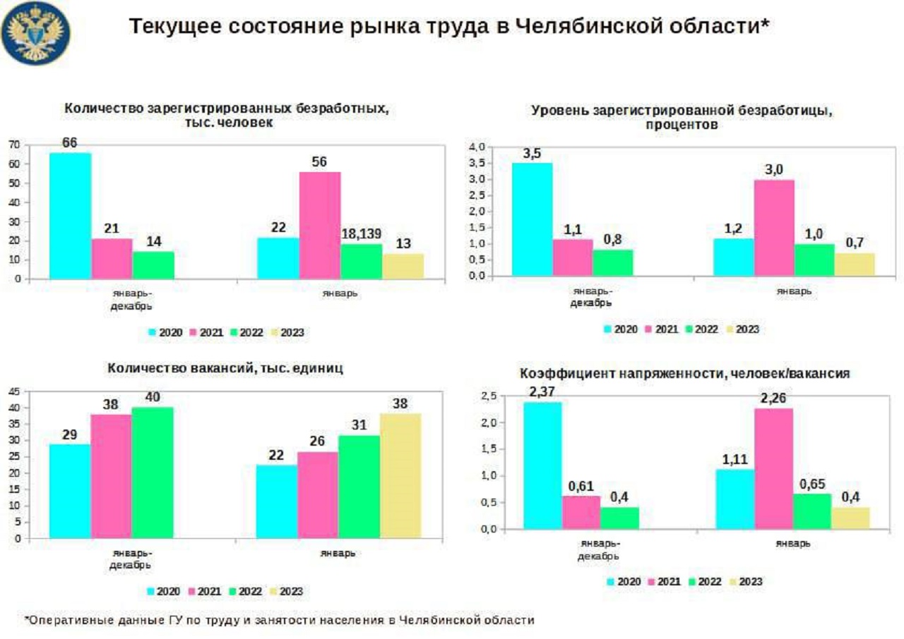 Исследование провели эксперты контрольно-счетной палаты (КСП) Челябинской области. Они подсчитали, что по итогам первого месяца 2023 года всего в регионе зарегистрировано 13 тыс. безработных – 0,7% трудоспособного населения. Для сравнения, год назад этот показатель составлял 18 тыс., а в 2021-м – и вовсе 56 тыс. человек.