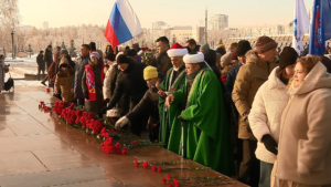 Залпы траурного салюта прозвучали в Магнитогорске. В честь Дня защитника Отечества у монумента "Тыл – фронту" прошло торжественное возложение цветов к Вечному огню.