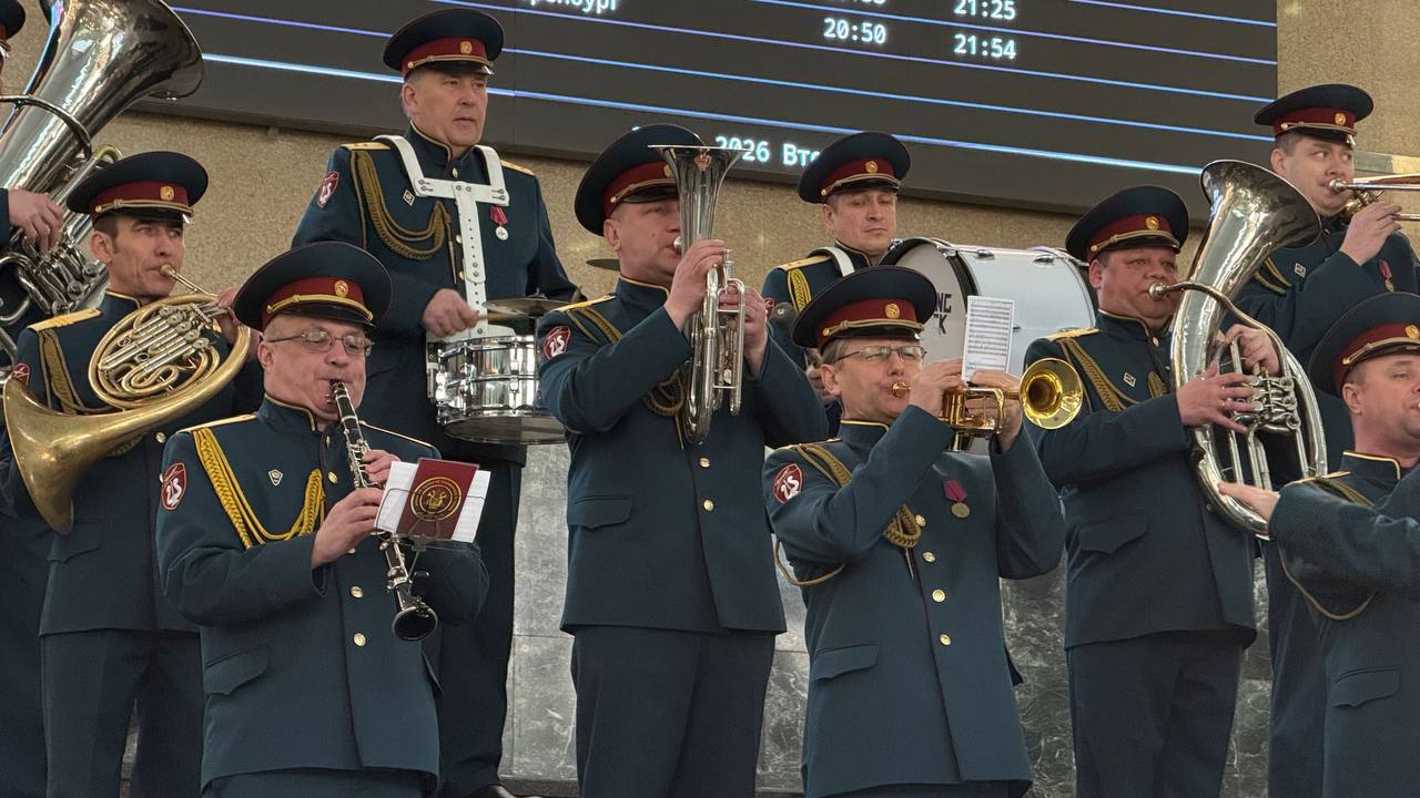 Жителей и гостей областного центра встретили на вокзале целым концертом- выступлением оркестра Управления Росгвардии по Челябинской области.