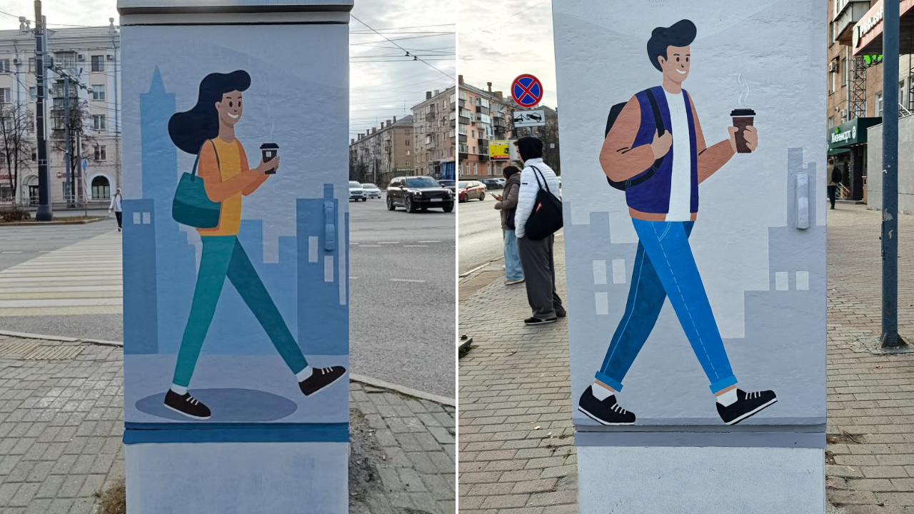 Авторами работ стал педагоги и ученики школы искусств имени Аристова. Они изобразили символы города – верблюда на фоне достопримечательностей Челябинска, памятник "Орленок", а через молодых людей, которые спешат по своим делам, показали энергию столицы Южного Урала.