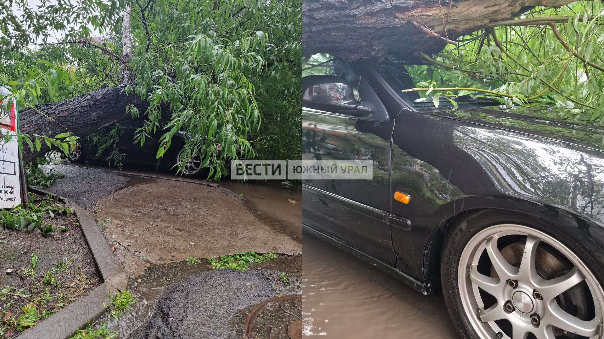 ЧП во дворе одного из жилых домов в Челябинске. На автомобиль упало дерево.