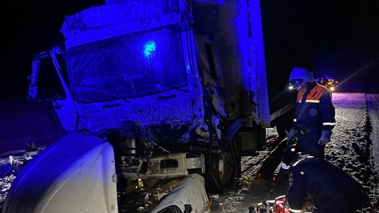 На дороге Кочкарь-Варламова также произошла смертельная авария. Из-за сильного гололеда и дождя столкнулись два грузовика.