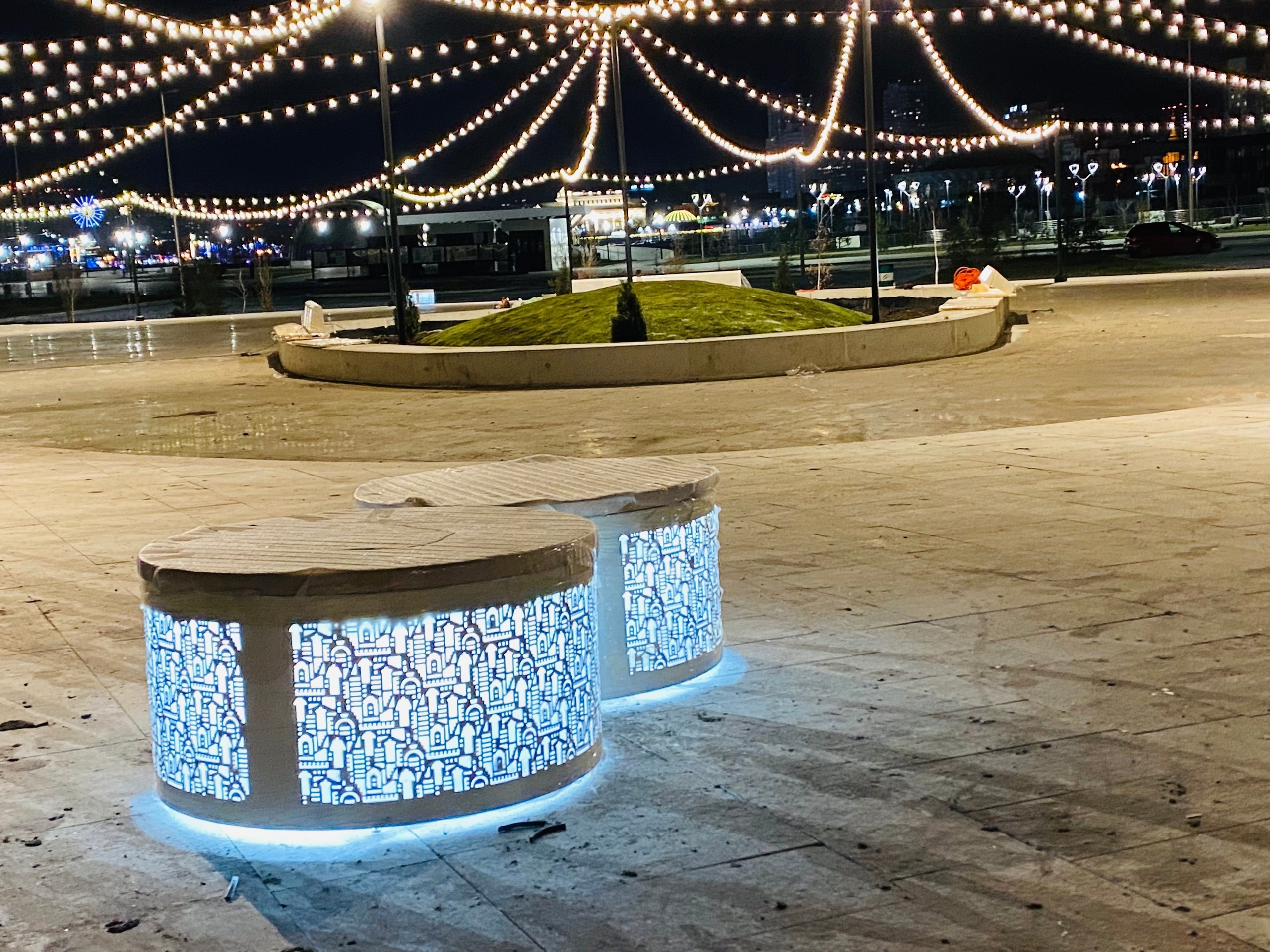Архитекторы задумали разместить возле камней сухой фонтан, зону с мольбертами для рисования, гамаки, танцплощадку, высадили сотни деревьев и тысячи кустарников. Большую часть дорожек сделали в природном стиле — набивными, то есть из нескольких слоев песка и мелкого щебня. Эксперты просят поделиться технологией, тем более, что покрытие оказалось стойким, уже выдержало осенние дожди и зимнюю уборку.