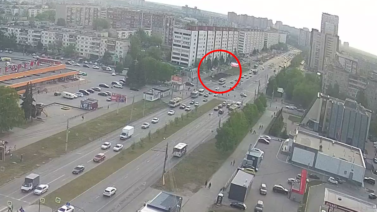 Вот видно, стандартное дорожное движение. Троллейбус едет в сторону центра. Совсем рядом, на расстоянии в несколько метров, столб накренился. Упал бы, если бы не линии электропередач. Они оказались прочными и выдержали металлическую махину.
