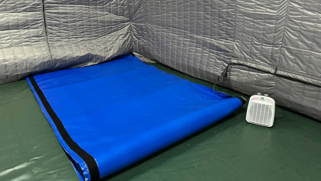 "Палатка работает по принципу термоса: сюда поступает тепло, она его сохраняет. Палатка оборудована запасным генератором. Он нужен, если основная пушка – источник тепла погаснет, чтобы было хотя бы электричество, мы смогли обогреться. Также палатка оборудована специальными ковриками. Если гражданину стало плохо или он захотел просто полежать, мы его укладываем сюда".