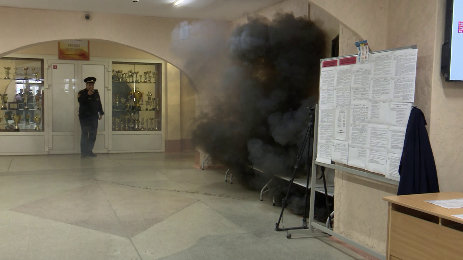 Реакция — мгновенная. Одна группа детей начала баррикадировать вход в класс, чтобы у преступника даже малейшего шанса попасть внутрь не осталось. Те, кто был в коридорах, закрылись в санитарных помещениях. Силовики искали преступника.