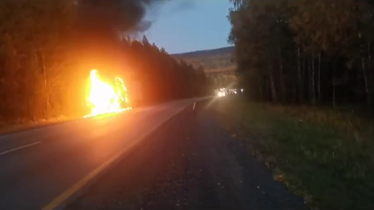 Инцидент произошел вечером в воскресенье, 24 сентября, на 1730-м километре федеральной трассы М5 "Урал", неподалеку от хребта Уреньга. Фуру охватило мощное пламя.