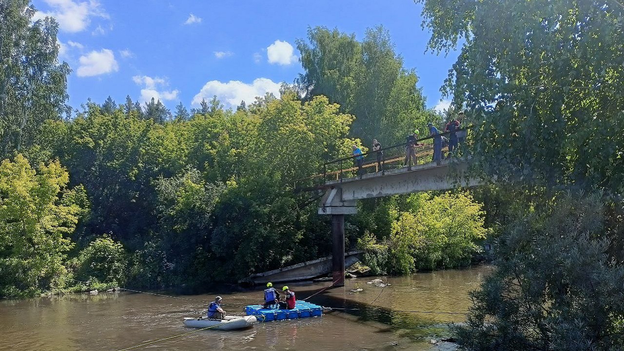 "Прошли этап "Мост". Получается навеска, ну, крутонаклонные перила, на плот, получается, и эвакуация пострадавшего на мост со всей техникой безопасности", — поясняет спасатель Влад Санников.