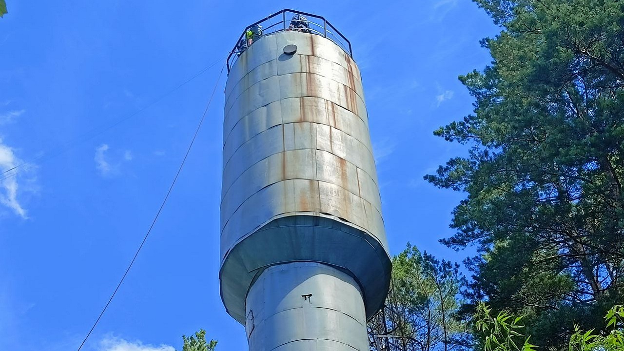 Двадцатиметровая вышка. На тросе спасатель Максим Иванов. Он не скрывает: ему действительно страшно, но долг зовет.
