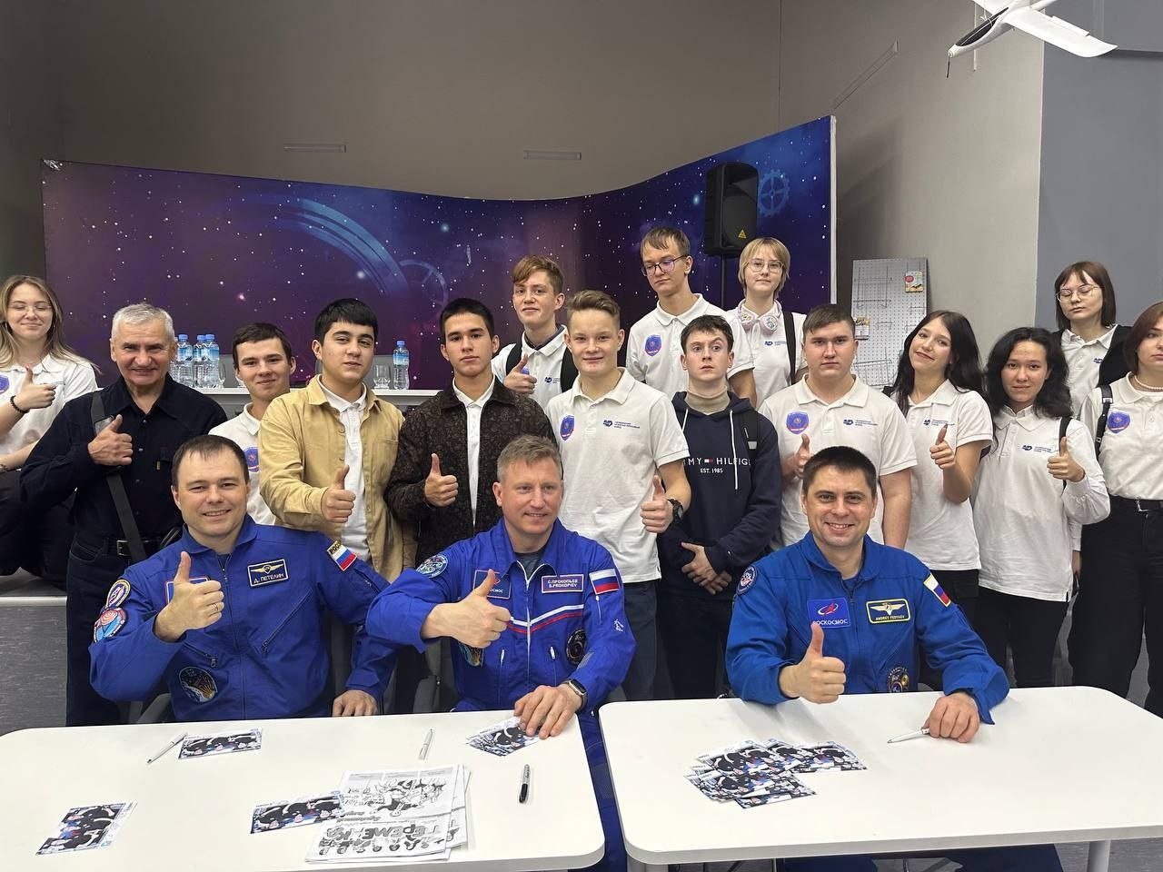 Также для космонавтов провели экскурсию по кванториуму, а школьникам — устроили автограф-сессию с гостями.