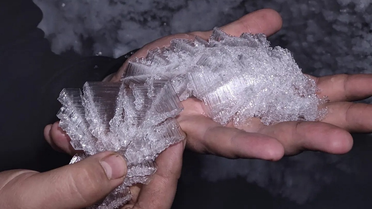 Также туристы показали "гиперснежинки" размером почти с ладонь – вода кристаллизировалась в причудливой форме.