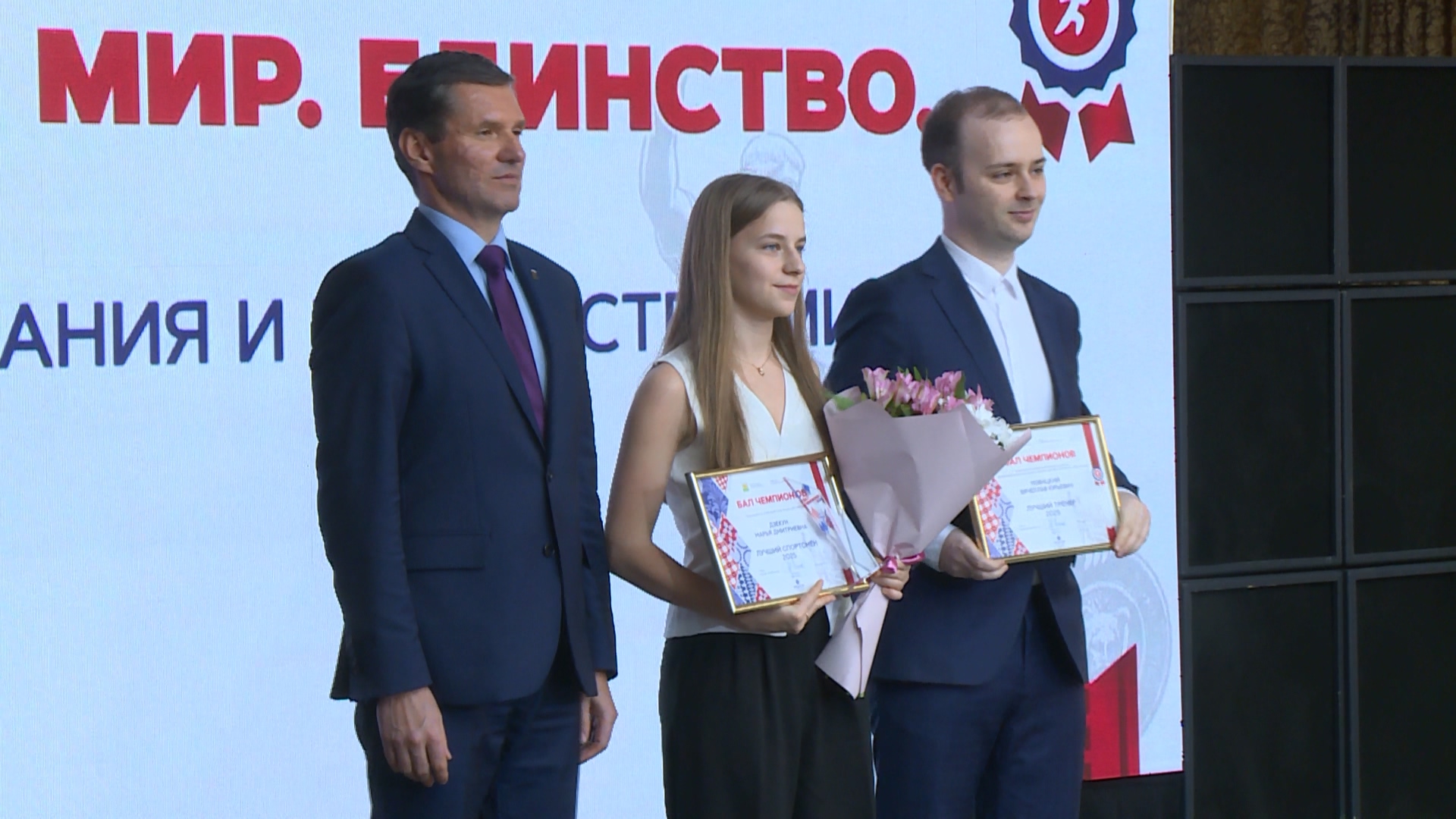 "Рада, что мы с ним разделили с ним эту награду, потому что у нас не большая на самом деле команда в школе, но мы все двигаемся вместе, стараемся. И я всегда рада, когда тренер рад", – делится победительница в номинации "Лучший спортсмен 2025 года" Маргарита Близнякова.