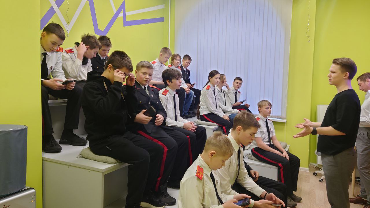 В одной из самых больших аудиторий для кадетов лекцию читает участник СВО Александр Заозеров. Также в "Моей территории" есть кабинет для консультаций с психологом.