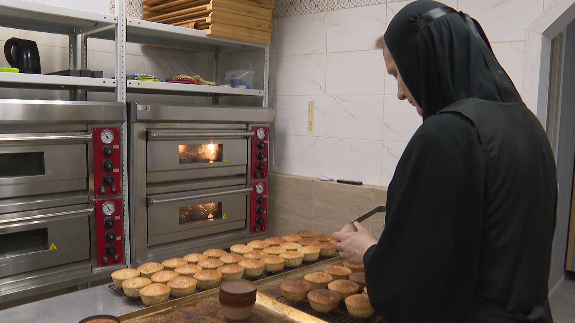 Несколько часов службы в храме – и сестры уже в пекарне. Она находится при монастыре. Над современными печами и мармидами висит икона. А тесто замешивается с двумя секретными ингредиентами – добром и молитвой.