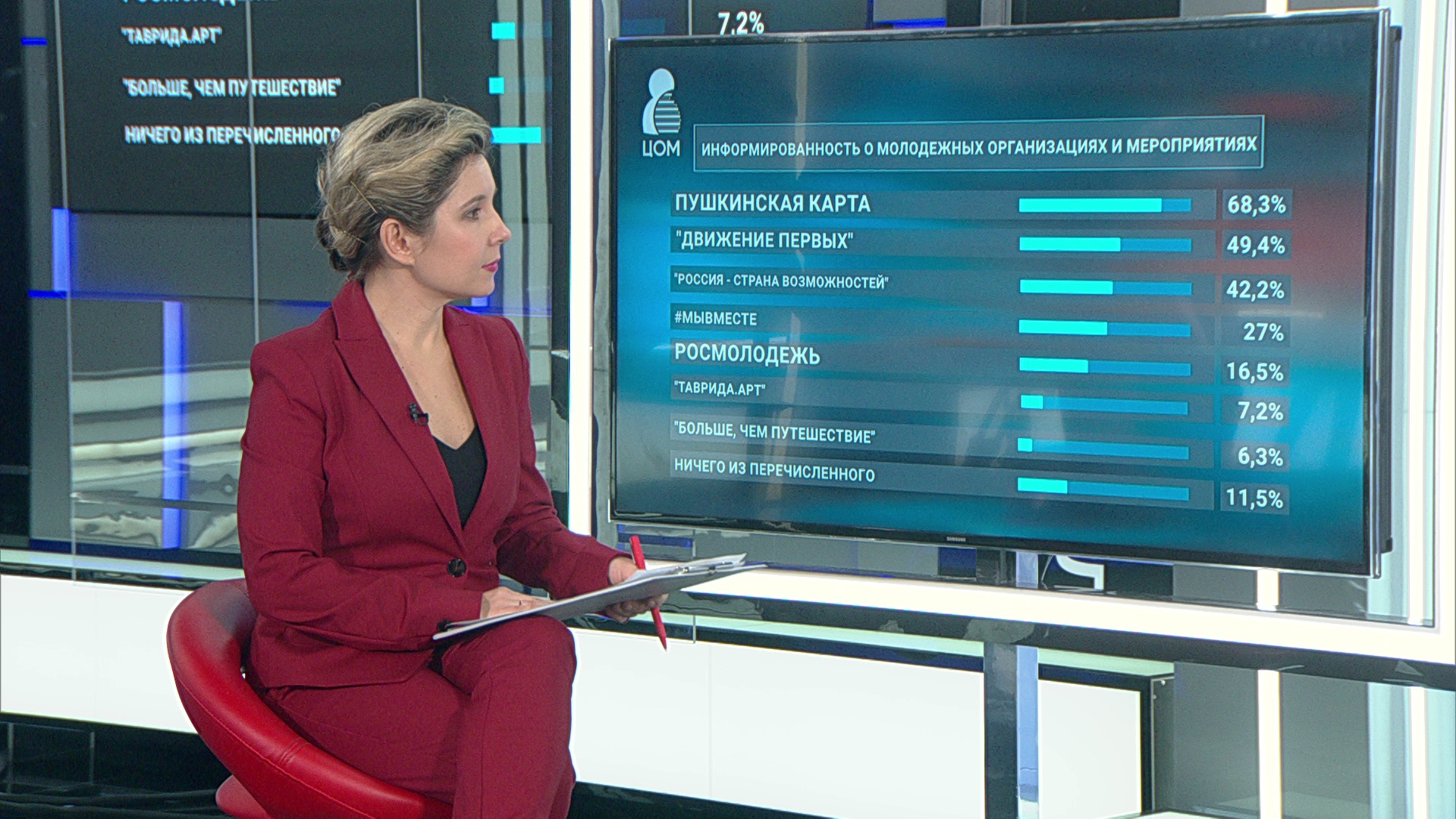 На втором месте — организация "Движение первых" и 49 % голосов. Тройку лидеров замыкает платформа, которая объединяет кадровые, социальные и образовательные проекты со всей страны — "Россия — страна возможностей". Рассказать о ней могли бы 42% респондентов.