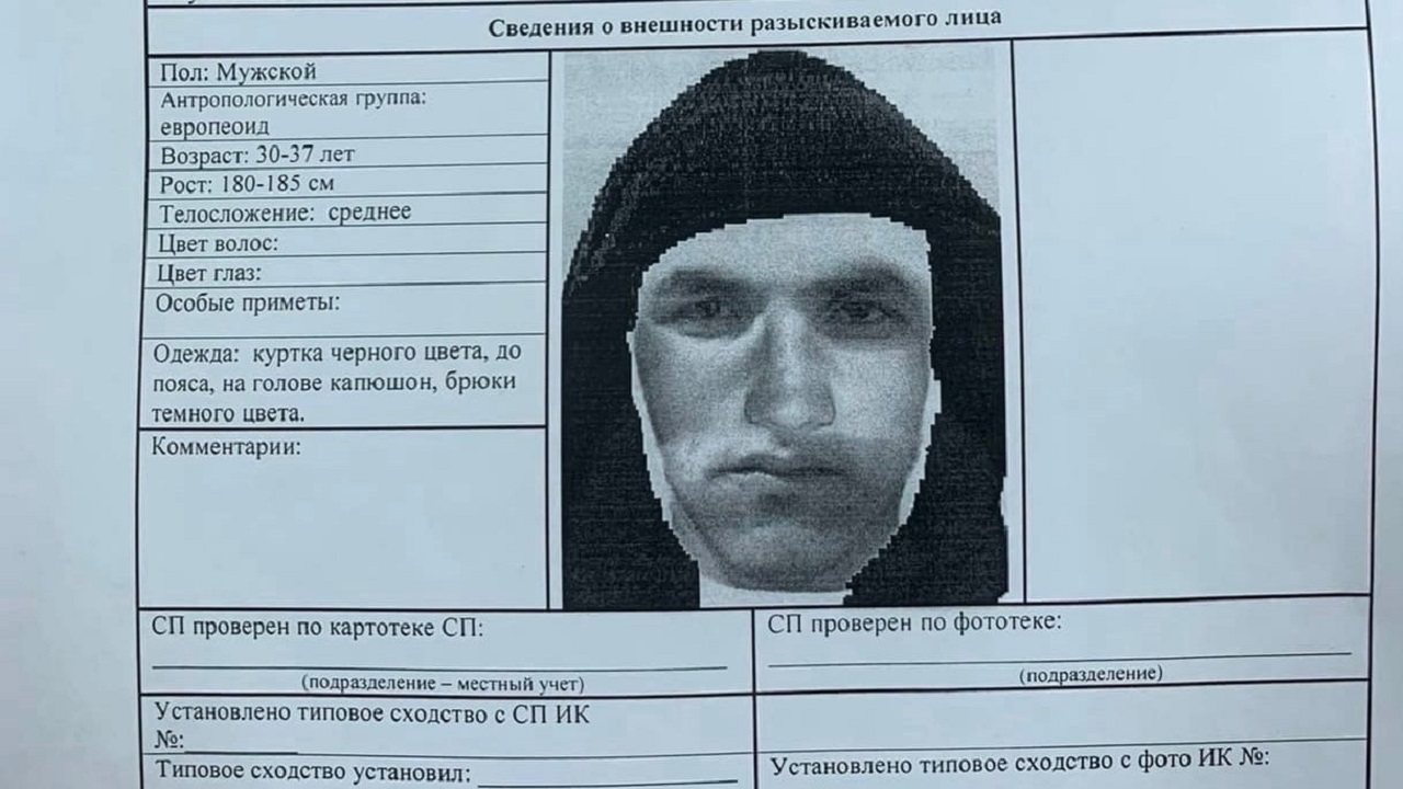 Женщина также отметила, что мужчине на вид около 30 лет, он был в черной шапке, и его лицо, кроме глаз, закрывает черны шарф, на нем черная куртка, спортивные штаны, телосложение худощавое.