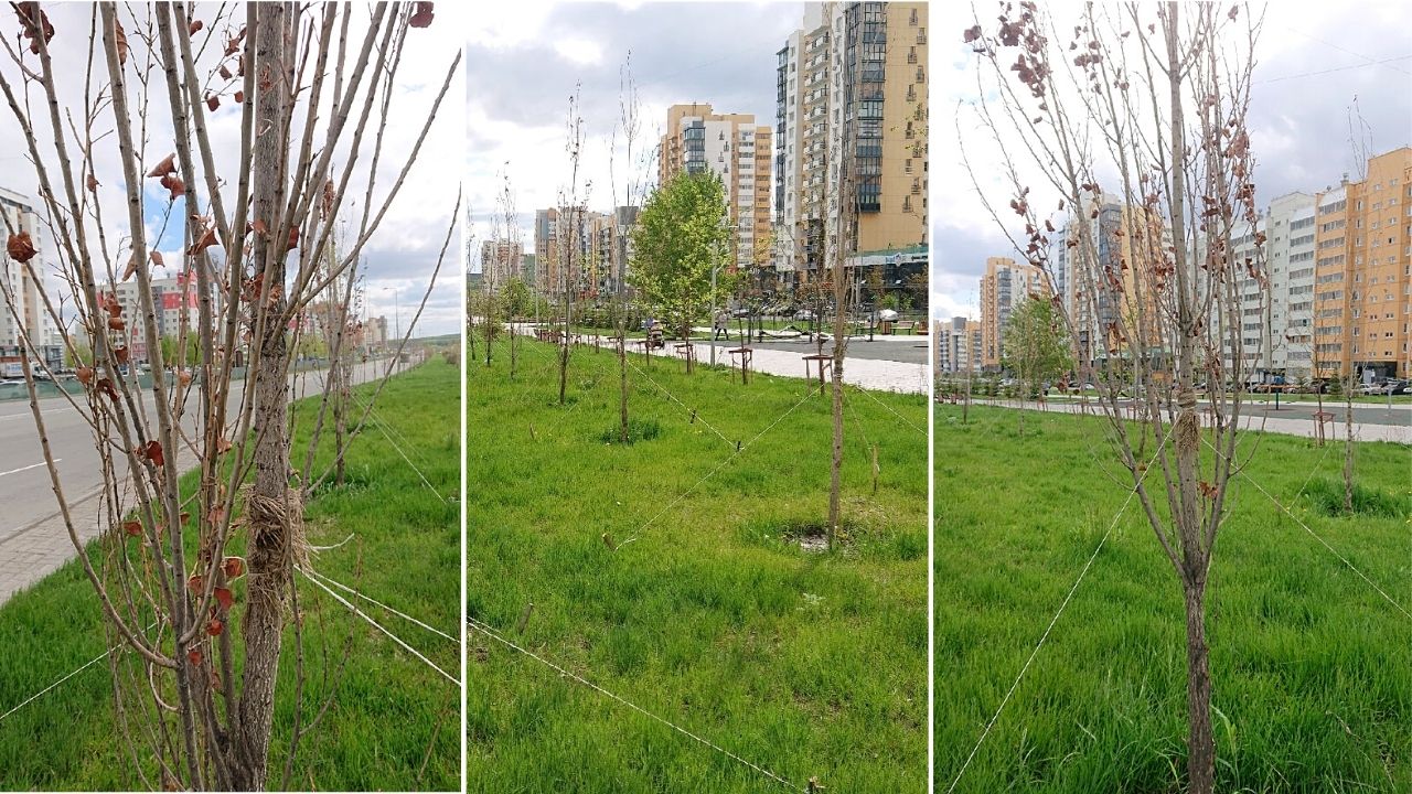 Новые саженцы в сквере Челябинска превратились в сухостой