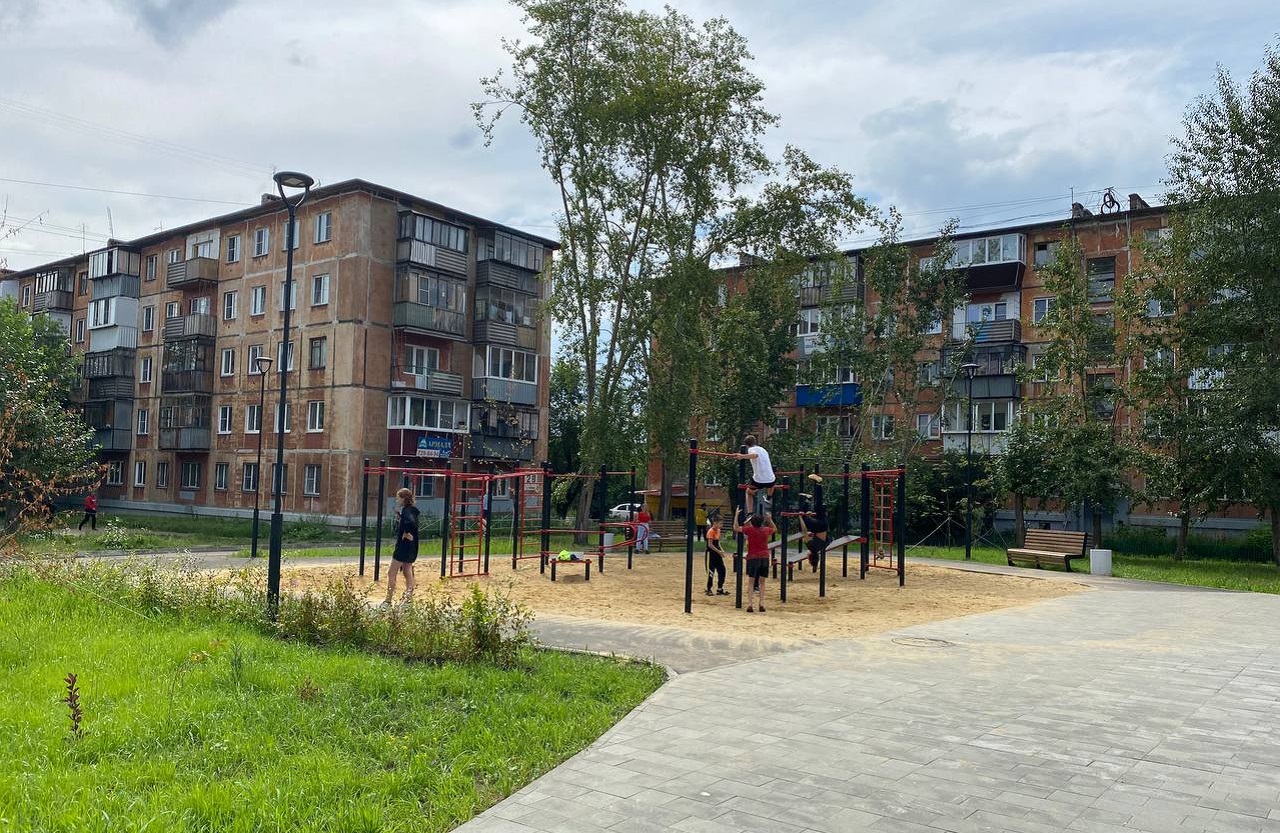 Вторая территория, которую посмотрели депутаты, — это двор на улице Трудовой. То, что придумали жители, подрядчики уже воплотили. Спортивную площадку облюбовали юные спортсмены, ребята помладше лепят куличи в новой песочнице. Не пустуют и подвесные качели.