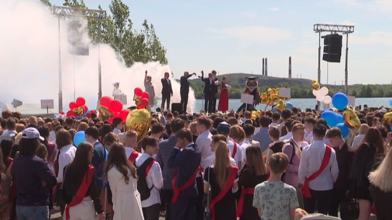 Почти две тысячи магнитогорских ребят с улыбками спускаются по ступеням на набережную Урала, где их уже ждет сцена и поздравления. Глава города Сергей Бердников желает выпускникам доброго пути и наказывает не забывать родную школу, учителей и любить свой город.