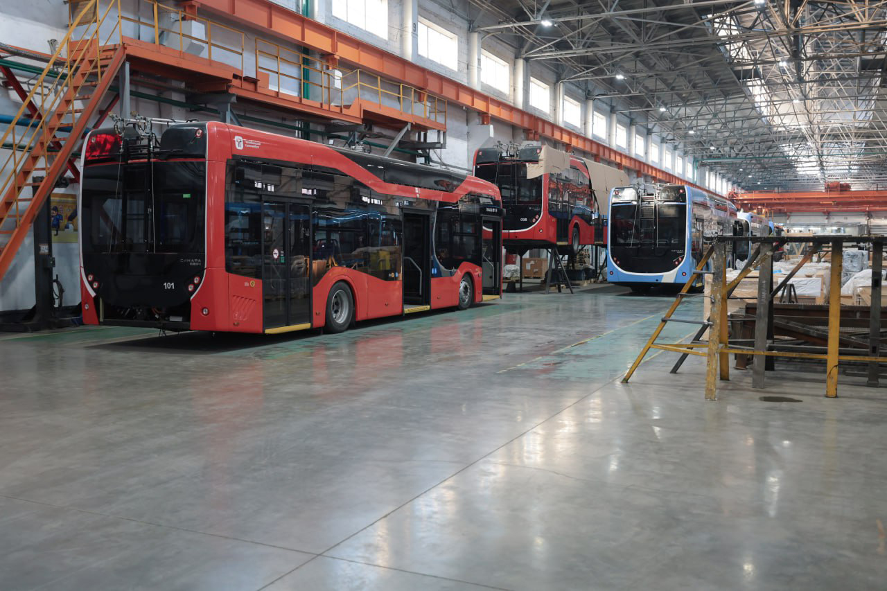 Следующий пункт визита — завод городского электрического транспорта. Произведенные там троллейбусы перевозят пассажиров в Челябинске, Ярославле, Миассе, Екатеринбурге, Калининграде и скоро выйдут на маршруты в Санкт-Петербурге. На предприятии также выпускают электробусы.