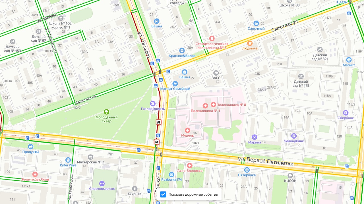 Искусственный интеллект прогнозирует в Челябинске к шести часам вечера 9-балльные пробки.
