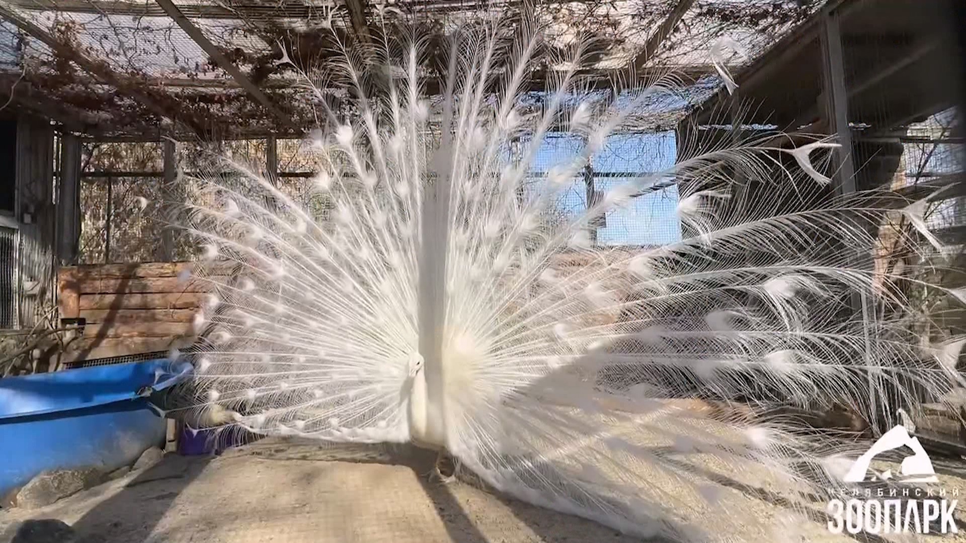 Герой необычного видео, снятого на Южном Урале, своим великолепием едва помещается в кадр. Белоснежный павлин с нетипичным для птицы именем Денис приковывает внимание посетителей челябинского зоопарка, благодаря своему удивительно красивому хвосту.