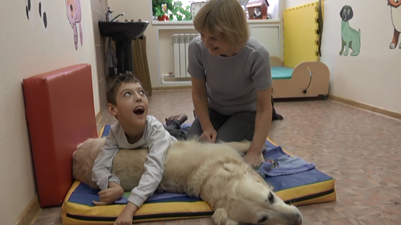 Он абсолютно ничего не видит, но всё слышит и чувствует. Федор Казаков, как и любой другой ребенок, радуется, когда ощущает тепло послушной Лады. Именно так и проходит канистерапия — метод лечения при помощи специально обученных собак.