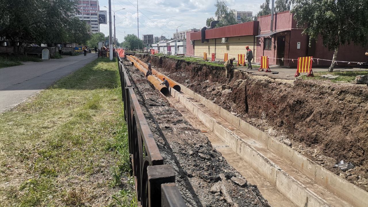 "Четыре года назад начались работы, протяженность магистрали порядка 1700 метров. И вот этот последний участок — 530 метров", – комментирует начальник службы эксплуатации треста "Теплофикация" Сергей Кремлев.