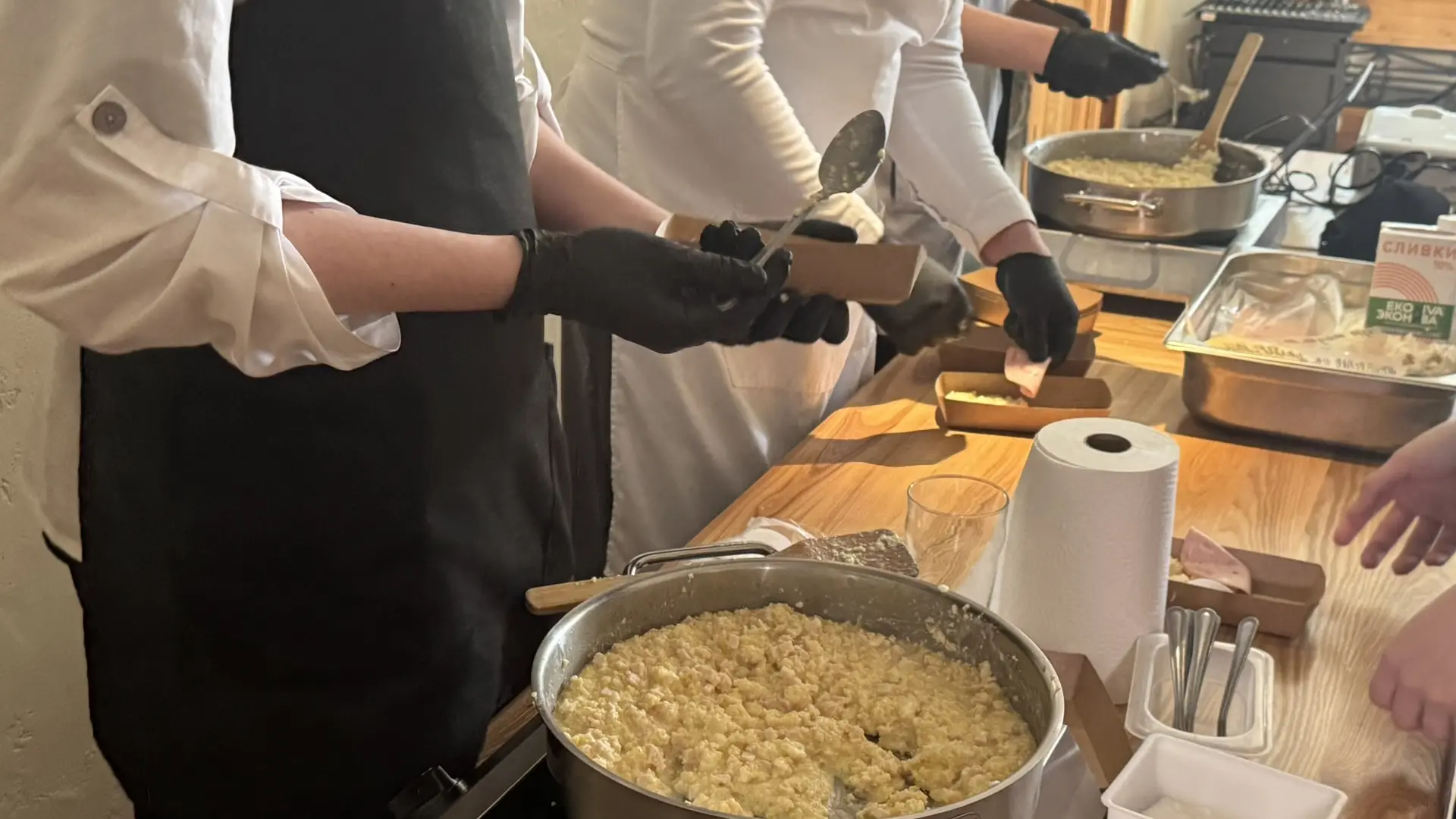 За каждым действием внимательно следит Максим Завьялов, хотя еще вчера сам стоял у плиты.