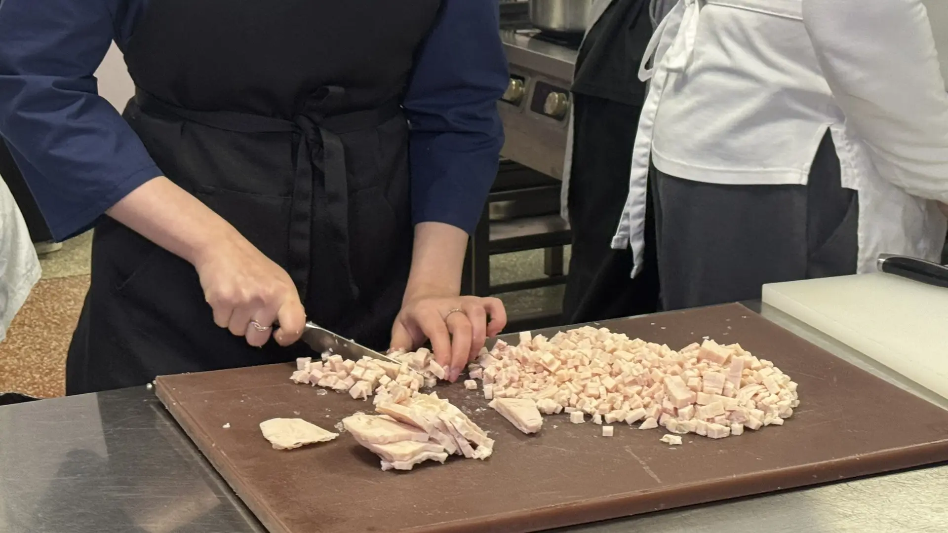 "Учишься, как нож правильно держать, как доску поставить. Это уже опыт, который пригодится даже дома", – отмечает студентка Челябинского государственного колледжа индустрии питания и торговли Валерия Столбова.
