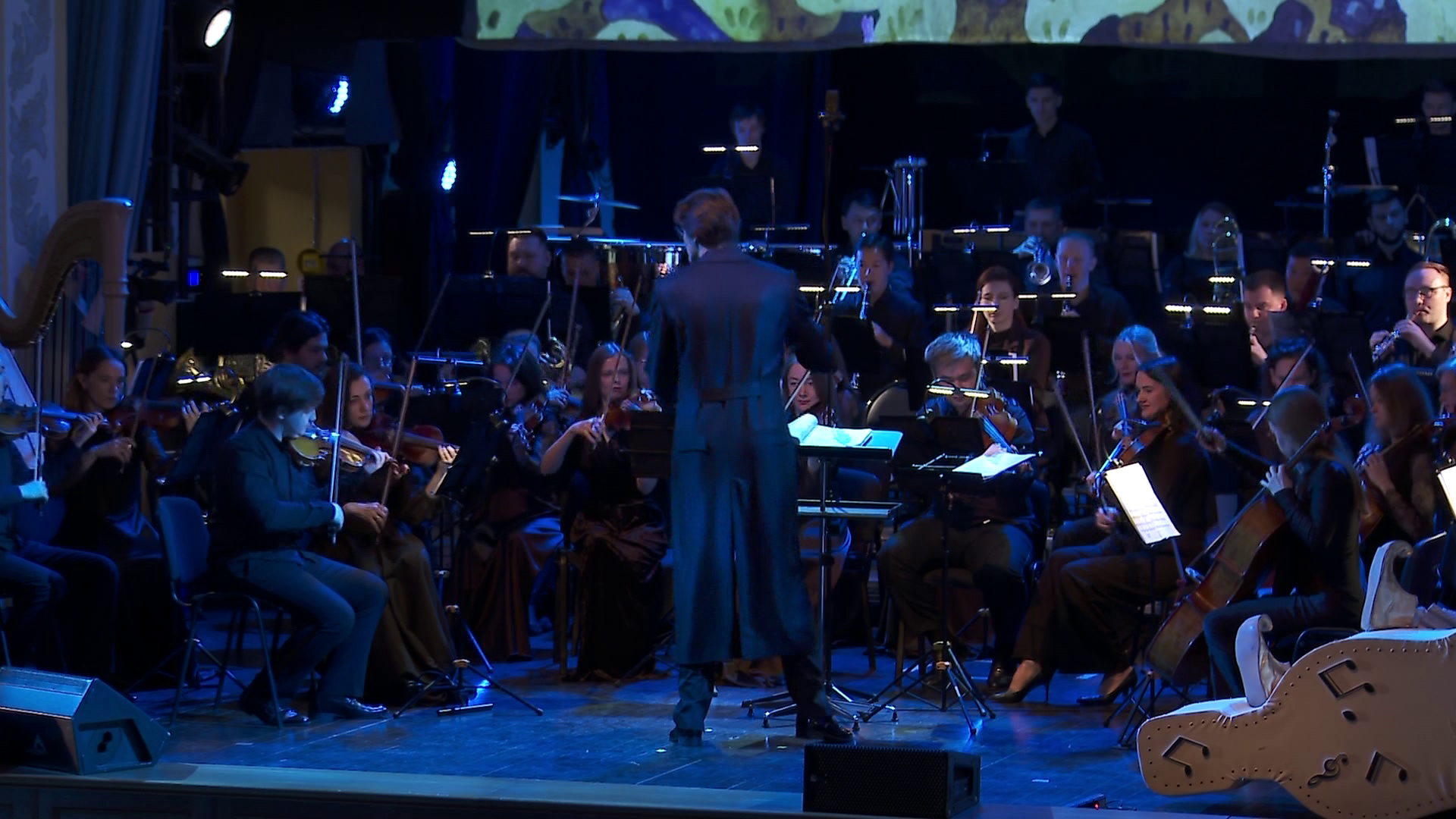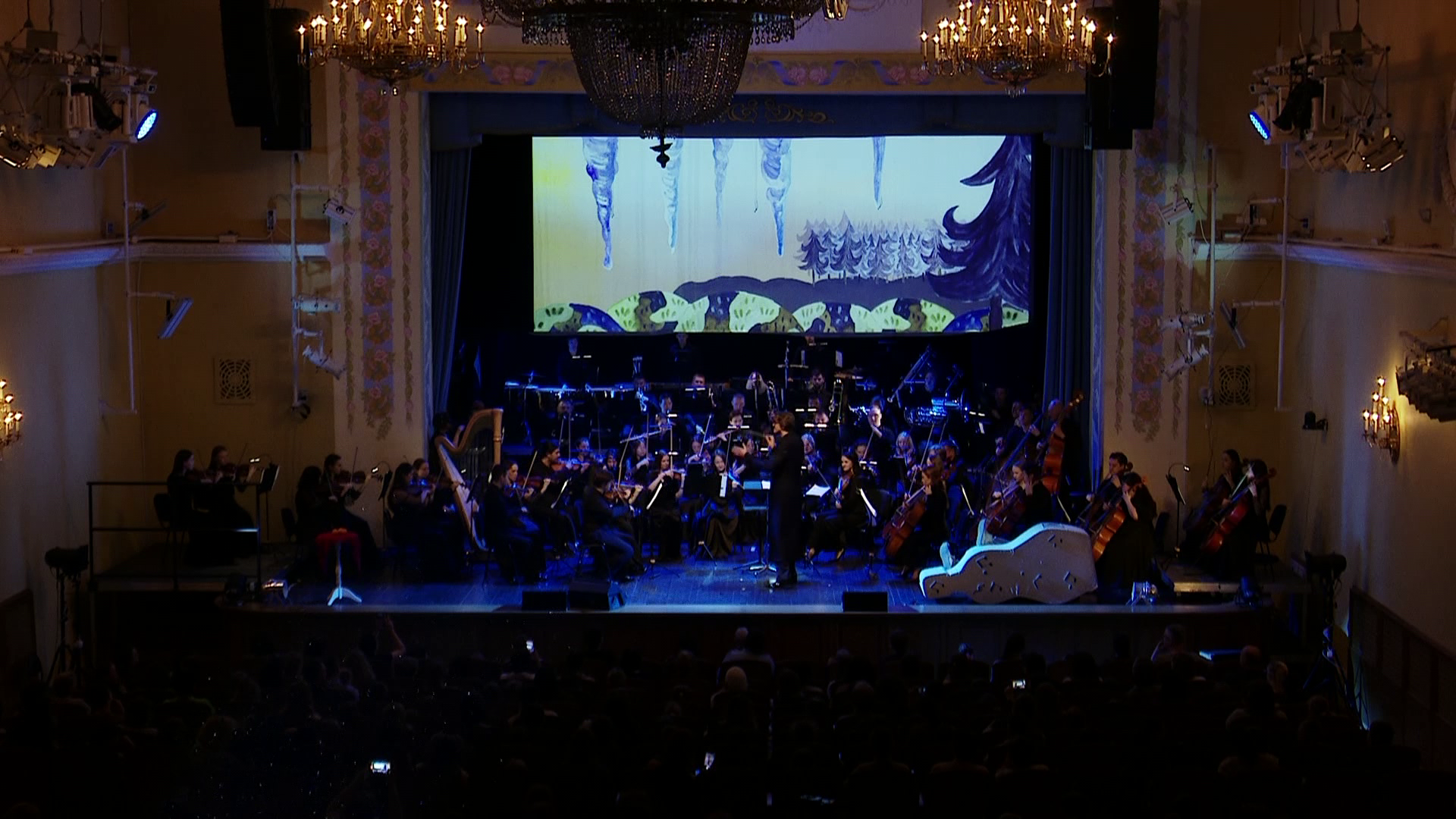И вот свет в зале гаснет, дирижер ступает на сцену. Спустя мгновения появляются главные действующие персонажи, не считая ее величества музыки, конечно. Это домовой и профессор. Через театрализованную постановку, лихо вплетенную между музыкальными произведениями, они знакомят зрителей с творчеством композитора и его биографией.