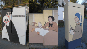Новые арт-объекты появились на улицах Челябинска. Неприметные серые электрошкафы преображают в рамках проекта "Город в красках". Увидеть рисунки можно на улице Энгельса и Алом поле.