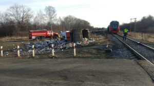 На перегоне Есаульская-Ишалино в Аргаяшском районе пассажирский поезд протаранил мусоровоз. Один человек погиб, еще один в тяжелом состоянии находится в больнице. Наша редакция получила кадры сразу после происшествия: стеклами усыпанный салон, серьезно поврежденная кабина машиниста.