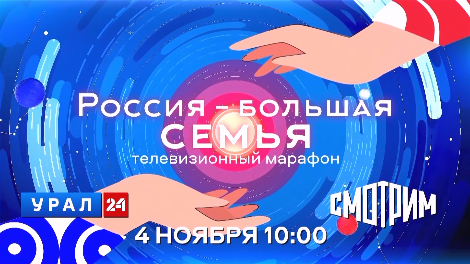 Трансляция Всероссийского марафона "Россия – большая семья" пройдет 4 ноября на медиаплатформе "Смотрим" и телеканале "Урал 24". Начало в 10:00.