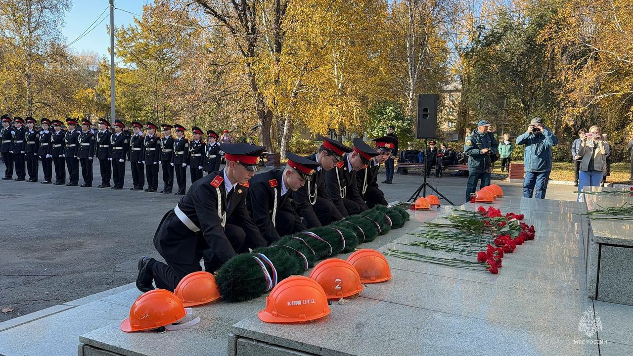 В митинге приняли участие ветераны-шахтеры, сотрудники МЧС, школьники, юнармейцы и неравнодушные жители. Они почтили память погибших минутой молчания и возложили цветы к мемориалу.