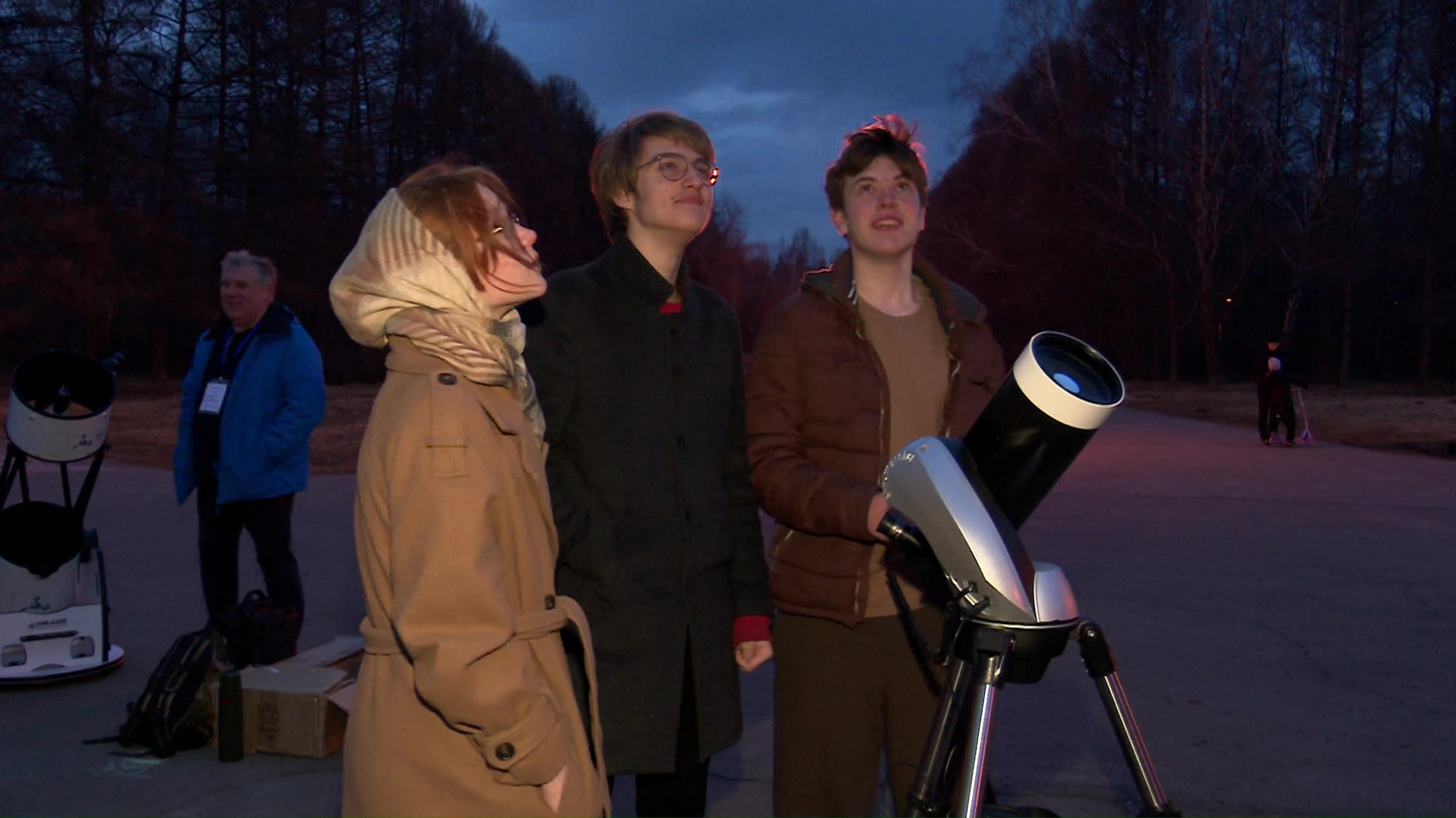 "Невероятные, конечно, у них эмоции. Обычно мы из города не смотрим, из города немного что можно посмотреть, засветка большая. Мы, как правило, выезжаем в поля, у нас есть специальные площадки за пределом города", — говорит заместитель директора "Курчатов-центра" Игорь Верховских.