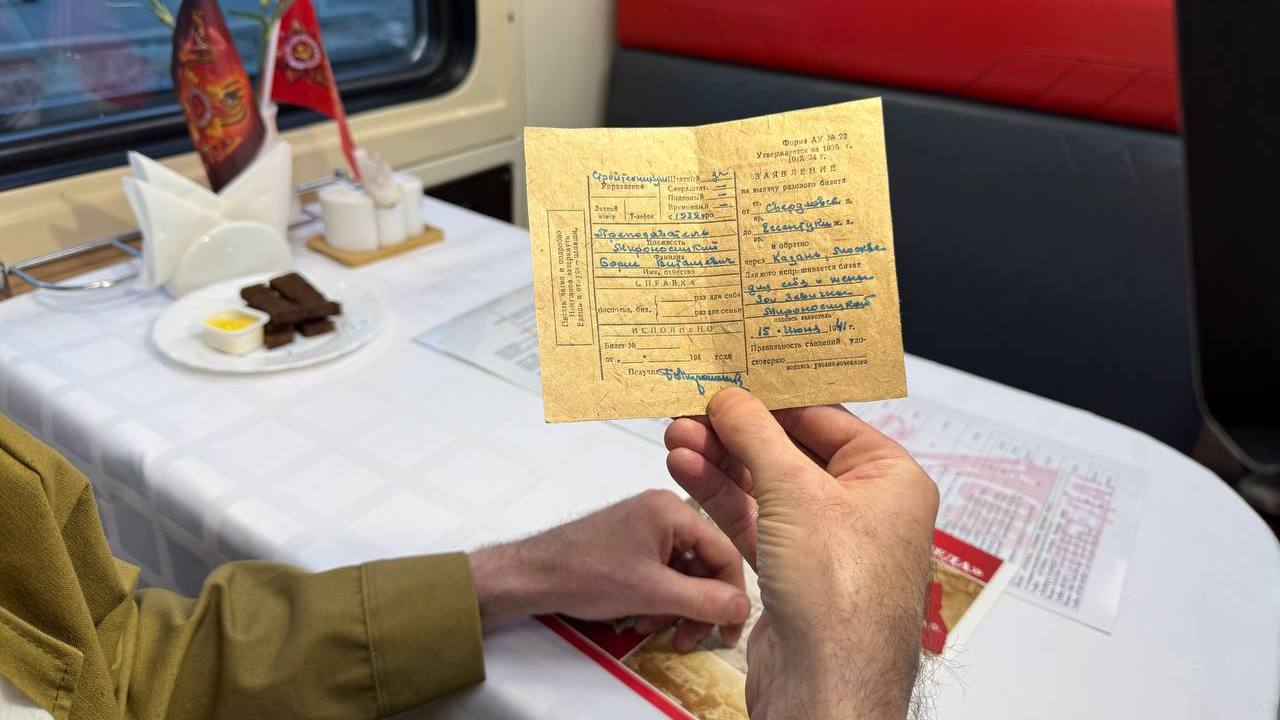 "Билеты мы купили аж за три месяца. То есть мы три месяца готовились, мы тематику подбирали, мы взяли с собой форму военную. Мы потом в неё будем переодеваться и фотографироваться", – отмечает пассажир туристического поезда Разиля Яппарова.
