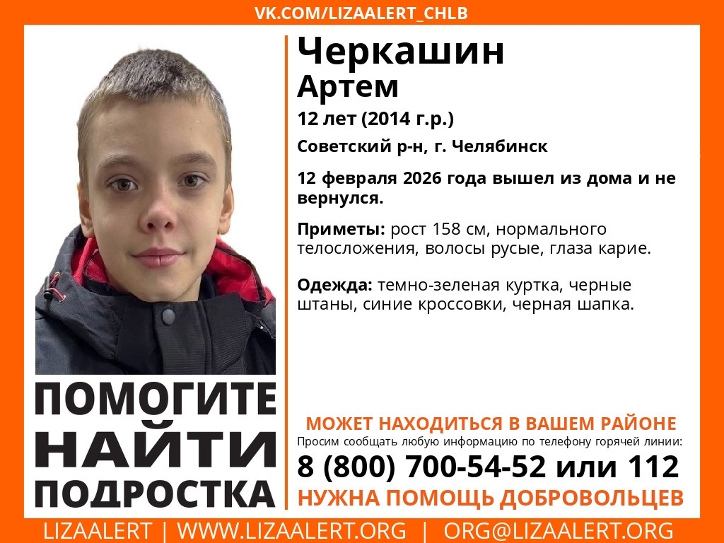 - 13.02.2026 13:03 В Челябинске ищут пропавшего 12-летнего мальчика