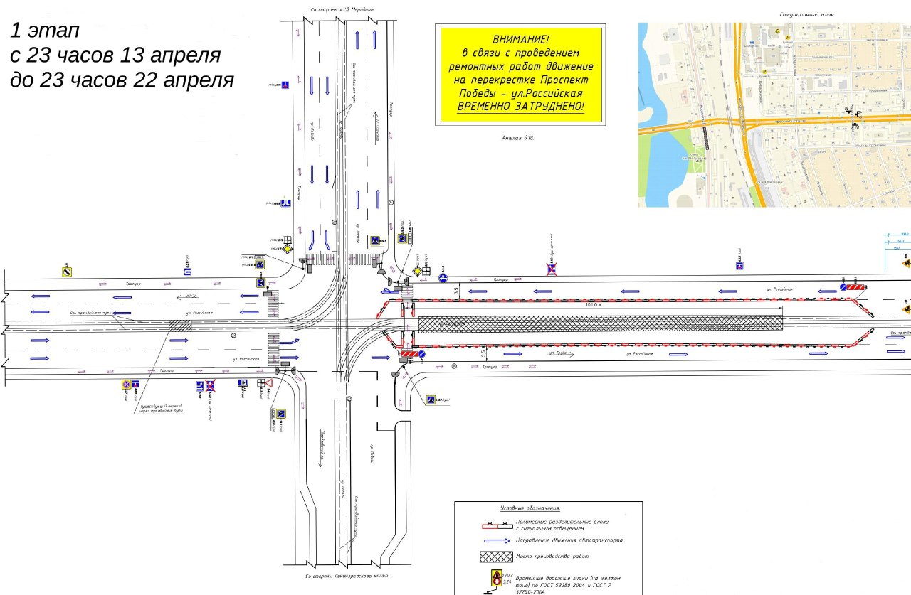 Речь идет о пересечении проспекта Победы и улицы Российской. Как пояснили в пресс-службе администрации Челябинска, работы начнутся уже с завтрашнего дня, 13 апреля. Они пройдут в два этапа.