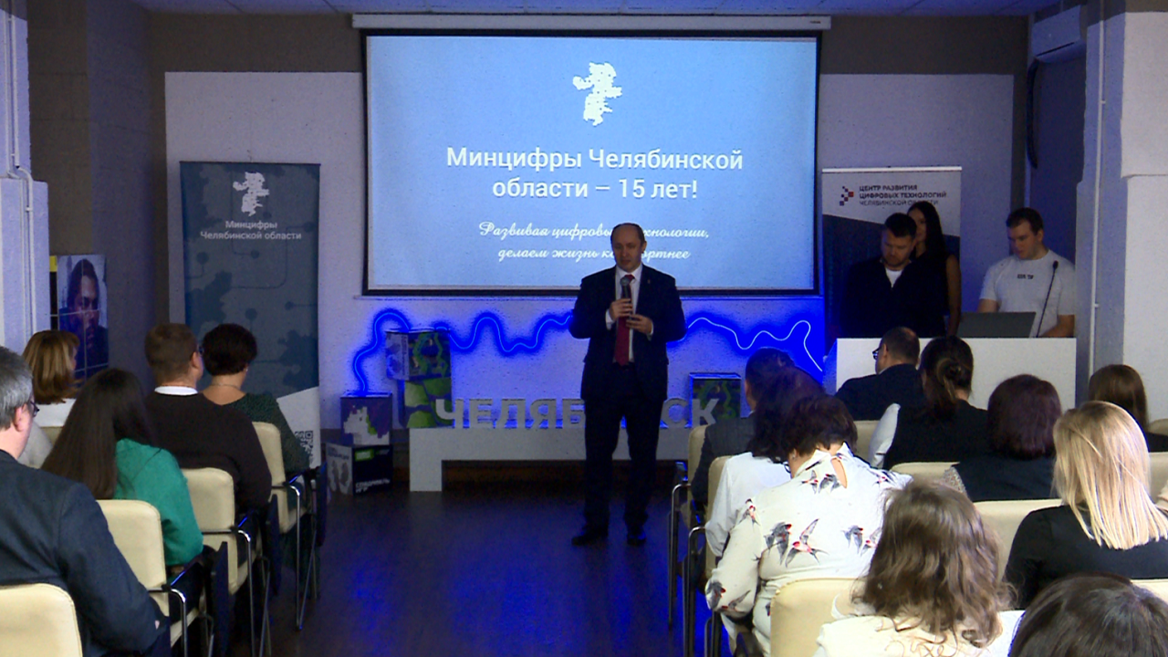 В этом зале цифровые технологии – для тех, кто их создает. С большого экрана большой коллектив с юбилеем поздравляет губернатор Челябинской области Алексей Текслер. Благодарственные письма от главы региона получают сотрудники Минцифры. Среди них и Алина Зинкевич.