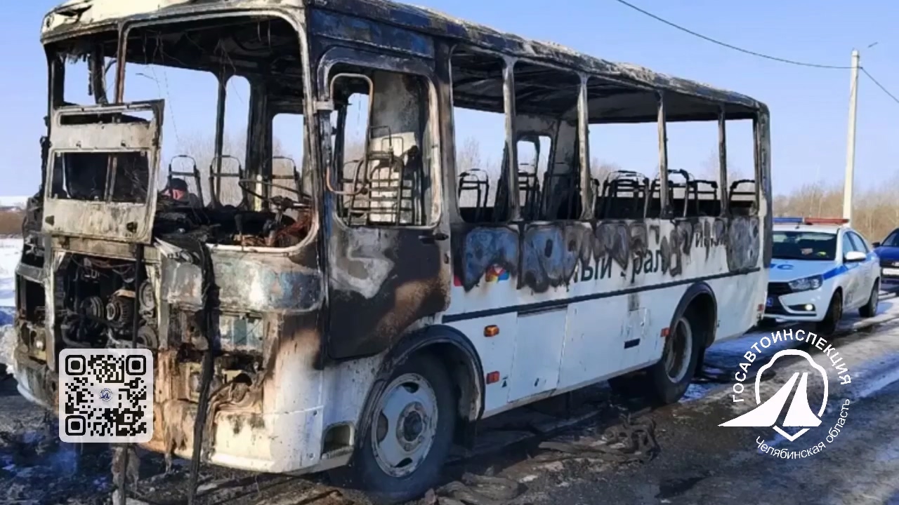 ЧП с участием пассажирского автобуса произошло на Южном Урале. Транспорт внезапно загорелся.