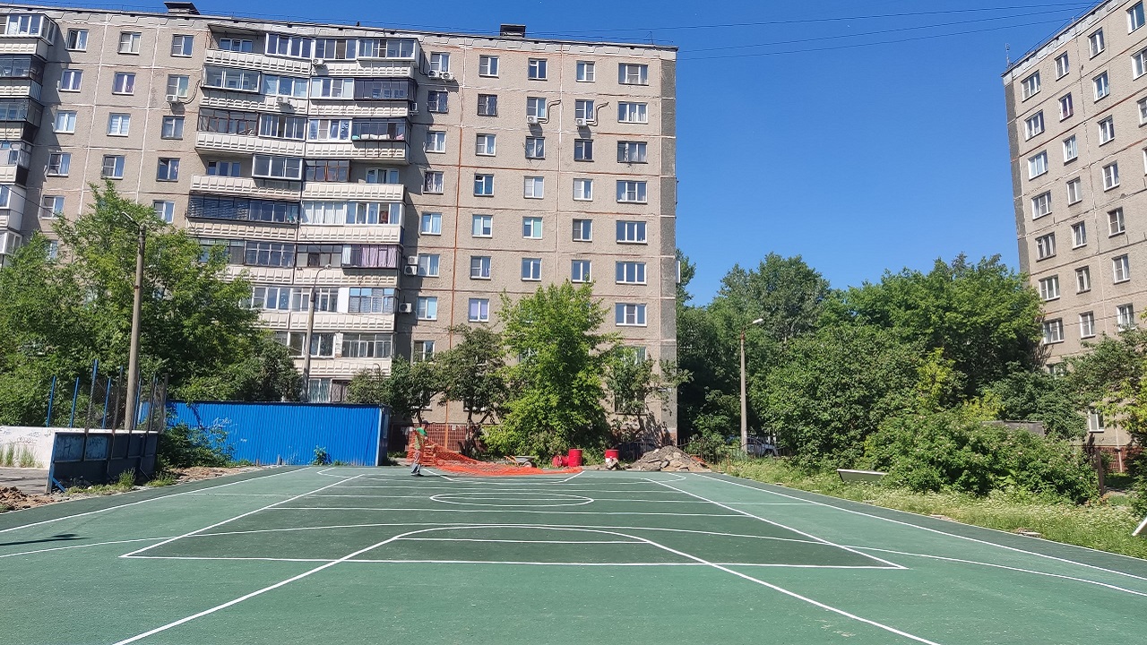 Сейчас его приводят в порядок. Так, идет монтаж спортплощадки с резиновым покрытием. Там можно будет играть в футбол, баскетбол и волейбол, а вместо старого хоккейного корта поставят новый.