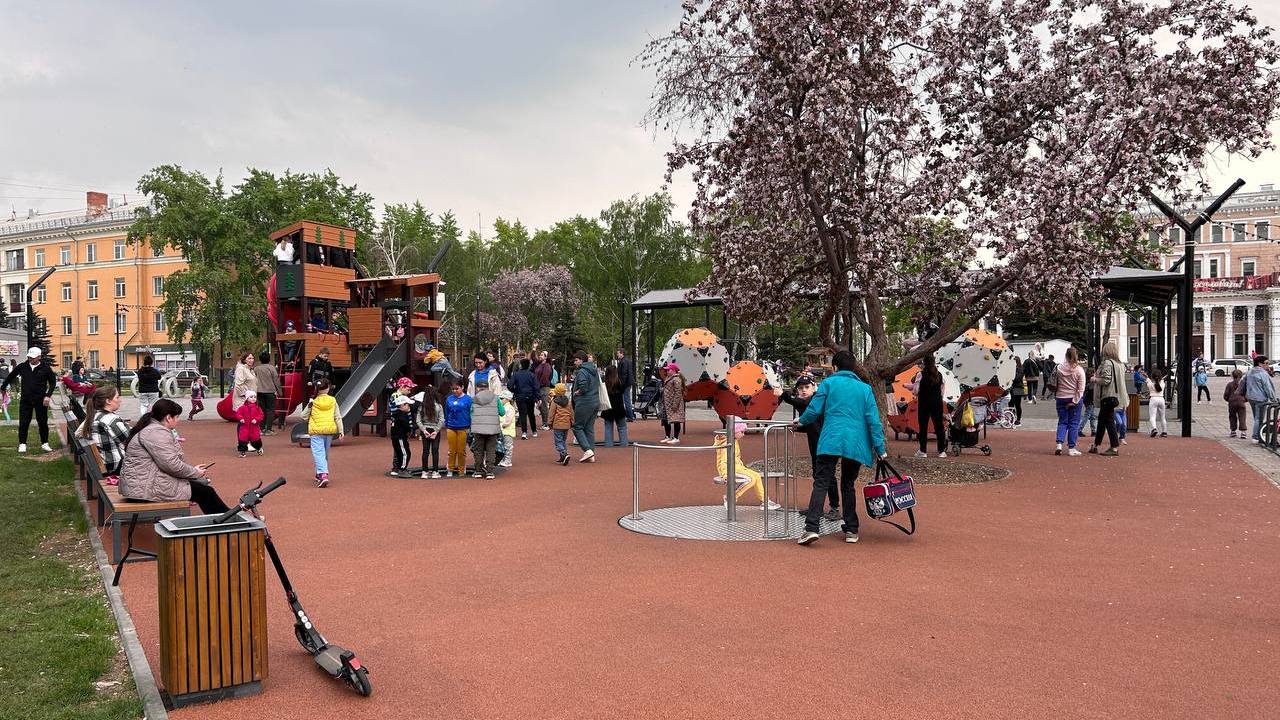 В сквере у ДК "Станкомаш" в Челябинске полностью завершены работы по благоустройству. Там установили детские игровые комплексы. Где не было, постелили прорезиненное покрытие. В рекордные сроки запущенная территория превратилась в уютный и красивый сквер.